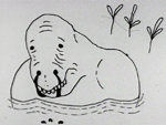 Jim Trainor THE MOSCHOPS Crude marker drawings depict the slow existential lives of a prehistoric animal herd. |